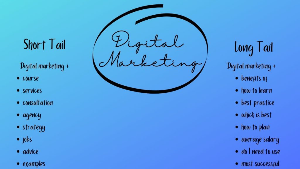 A long tail keyword is normally a more in-depth query which includes one or more of the short tail search terms.