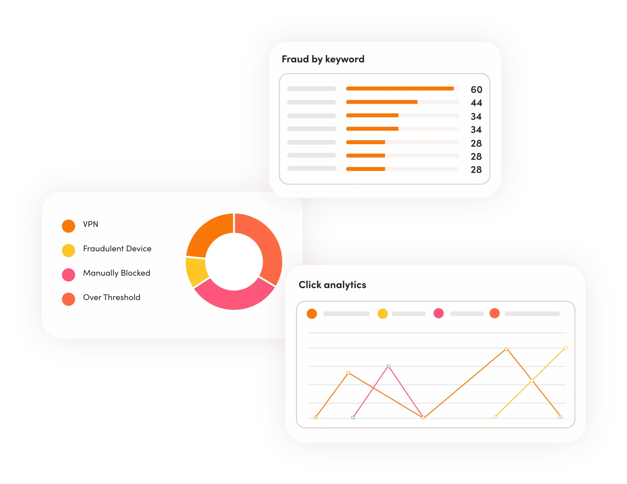 Our award-winning click fraud and ad fraud prevention technology conducts over 2,000 real-time behavioral tests on each visit. Data points such as geolocation, click limit, VPN detection, and session behavior are taken into account, among other data points.