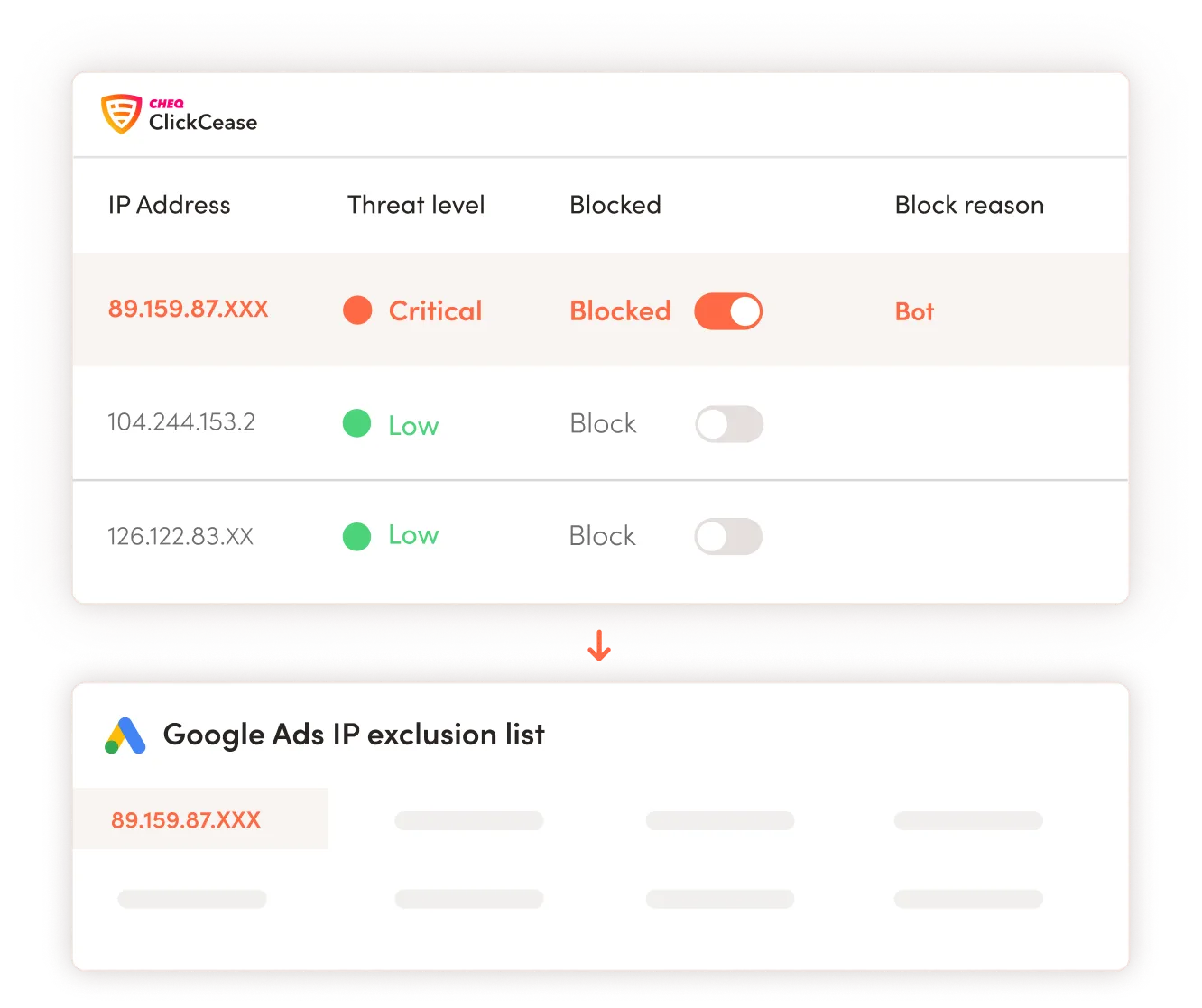 Our filters analyze every click on your Google, Meta or Bing Ads in real time. Block bad bots, click farms and other types of invalid traffic.